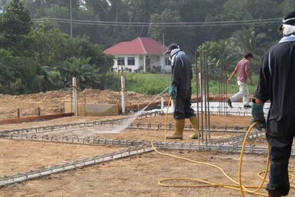 Through spraying soil toxicant emulsion on the soil adjoining the foundation structure and below the floor concrete at plinth level and around the external perimeter of the building close to the external wall. This treatment Will be carried out at various stages of construction in co–ordination with the construction Project Manager or Engineer keeping a close watch over the Progress of the construction work. The pre-construction anti-termite is supported by (TEN years) 10 Years Service WARRANTY
