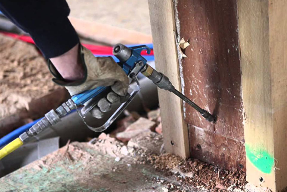 * Drilling ½” Dai holes at the wall & floor junctions at one foot intervals and Injecting soil poisons to create a continuous chemical barrier from inside.