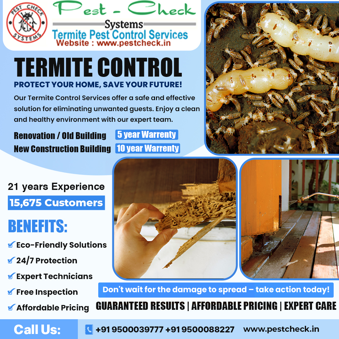 We would like to introduce ourselves as one of the leading pest control organization. Based on a survey carried over by Govt. Agencies and from our past experience, it has been found that most of the areas in and around Chennai Metro and Sub Urban Areas in Tamil Nadu / In India are vulnerable for termite infestation. Hence it is highly necessary to recommend the termite proofing measures for the new constructions in order to protect the valuable property and the specialized interior designs created by you.We carry out the termite proofing measures for the NEW BUILDINGS RCC Foundation, Structural Foundation and Pile Foundation: