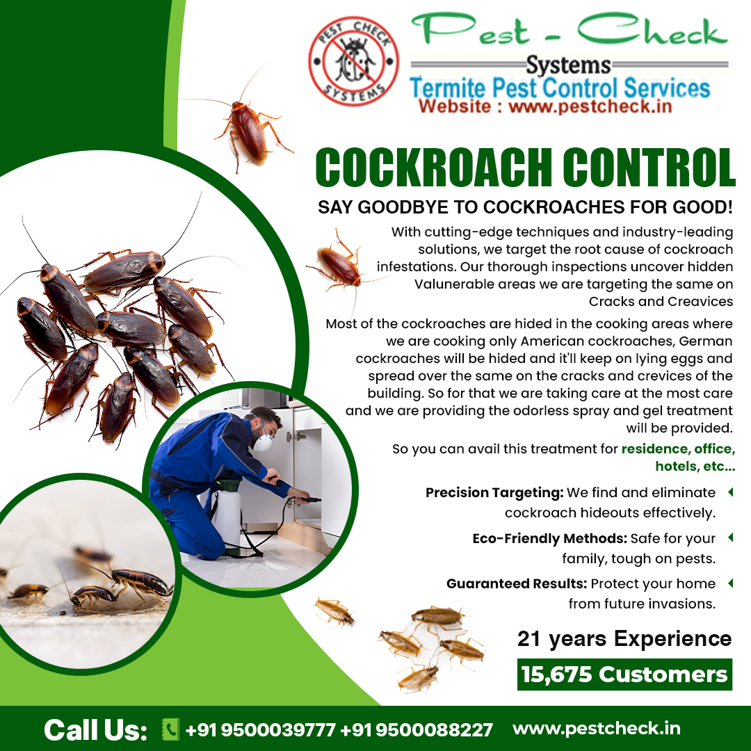 Disinfestations Treatment against Cockroaches Control Valid for 1 year AMC is not required for any Residential